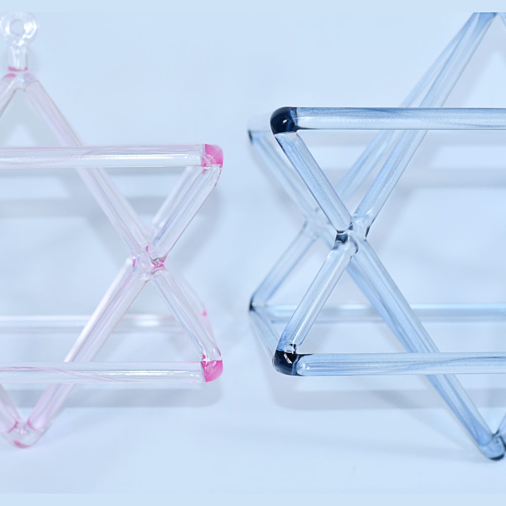 This delicate pale pink crystal singing merkaba is meticulously crafted from high-quality quartz, designed to enhance your spiritual practice and living space. When gently tapped, it produces a clear, resonant tone that promotes deep relaxation and mental clarity.